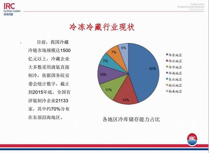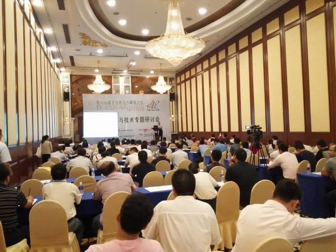 2016年9月23日上午,白松泉董事長(zhǎng)在南京維景國(guó)際大酒店冷鏈裝備與技術(shù)專(zhuān)題研討會(huì)上分享了冷庫(kù)建設(shè)與改造優(yōu)化解決方案,并向各位同仁推廣介紹一種新型載冷劑---冰河冷媒!