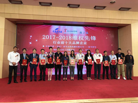 我公司被評(píng)為2017-2018維權(quán)先鋒