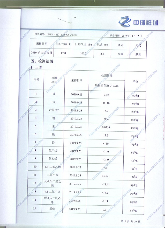 朝陽(yáng)光達(dá)化工有限公司土壤檢測(cè)報(bào)告公示