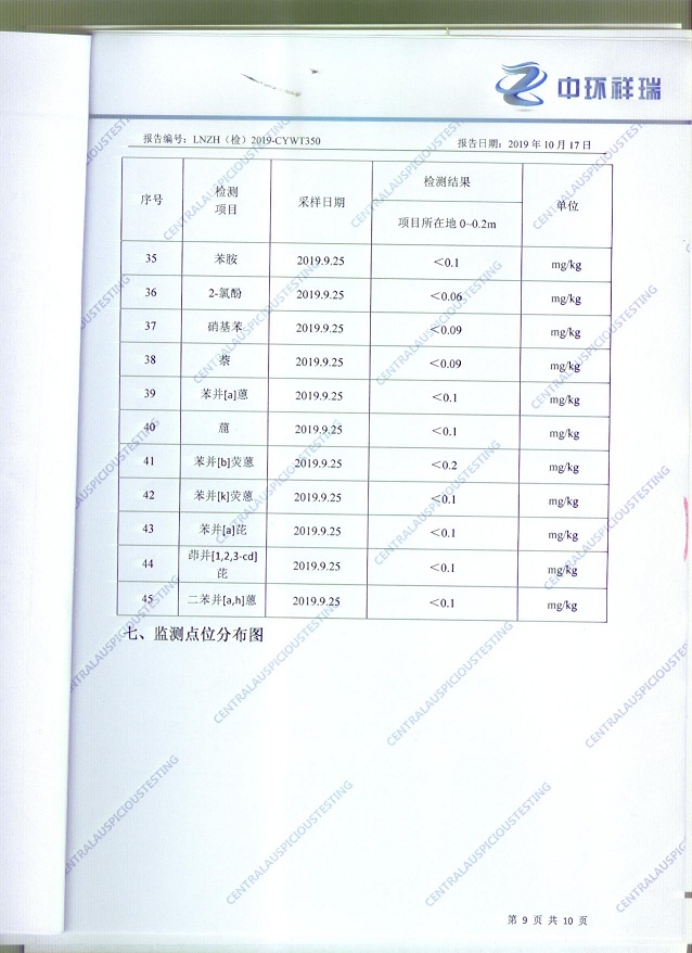 朝陽(yáng)光達(dá)化工有限公司老廠區(qū)土壤檢測(cè)報(bào)告公示