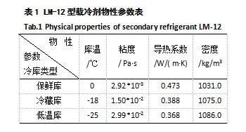 此優(yōu)化方案中所用載冷劑為冰河冷媒科技(朝陽)有限公司有限專利產(chǎn)品冰河冷媒,其特點(diǎn)是用量省、載冷能力強(qiáng)、防銹性能突出、無毒、無閃點(diǎn)解決了傳統(tǒng)載冷劑存在的問題,使設(shè)備使用壽命至15年以上。相關(guān)物性參數(shù)對比見表1。