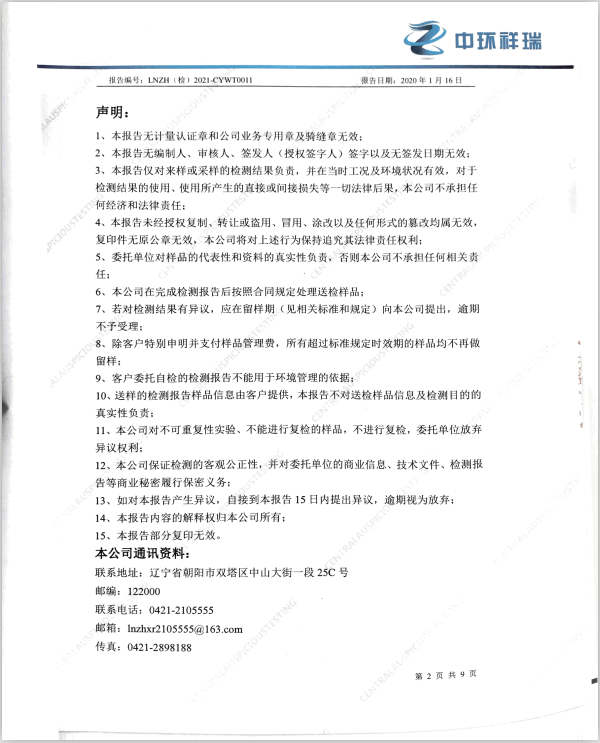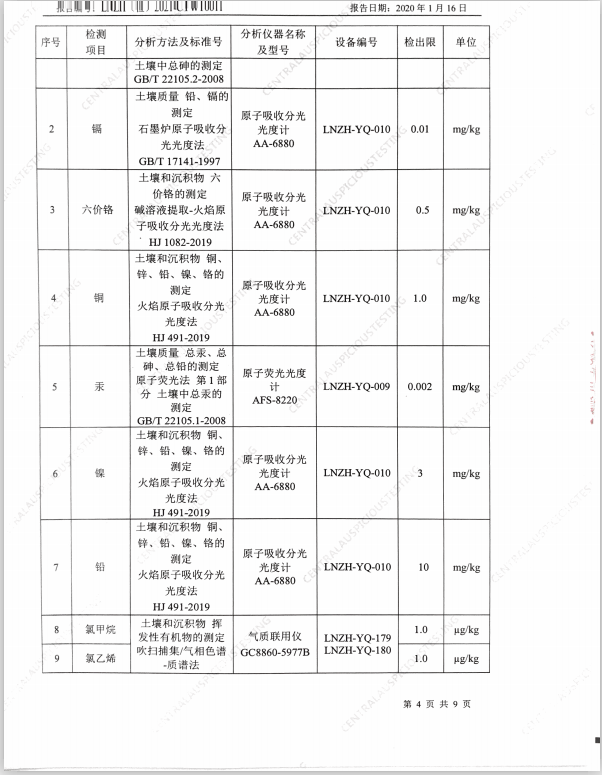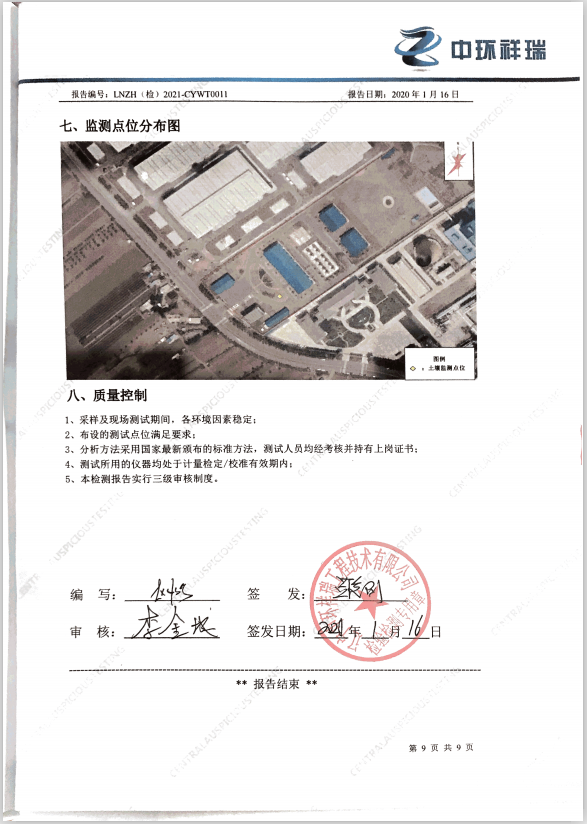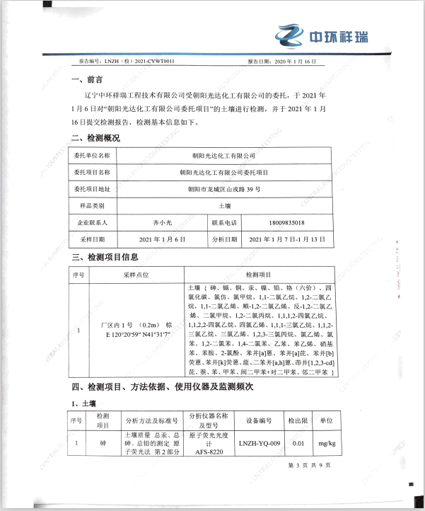 朝陽光達化工有限公司土壤檢測報告公示