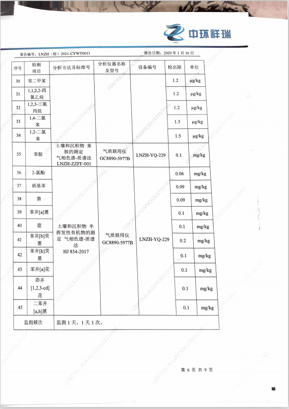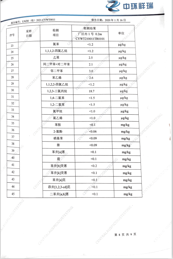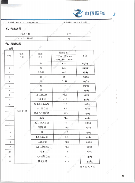 朝陽光達化工有限公司西廠區(qū)土壤檢測報告公示