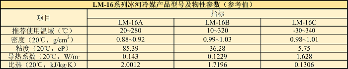 LM-16系列冰河冷媒由合成型碳氫化合物改性而成,結(jié)構(gòu)穩(wěn)定,熱穩(wěn)定好。外觀為無色或淺色液體,不溶于水,閉口閃點均在120℃以上,安全性高。具有加熱均勻、調(diào)溫控制準(zhǔn)確、傳熱效果好、節(jié)能、輸送和操作方便等特點,可應(yīng)用于醫(yī)藥、化工、光熱新能源、石油天然氣等領(lǐng)域。